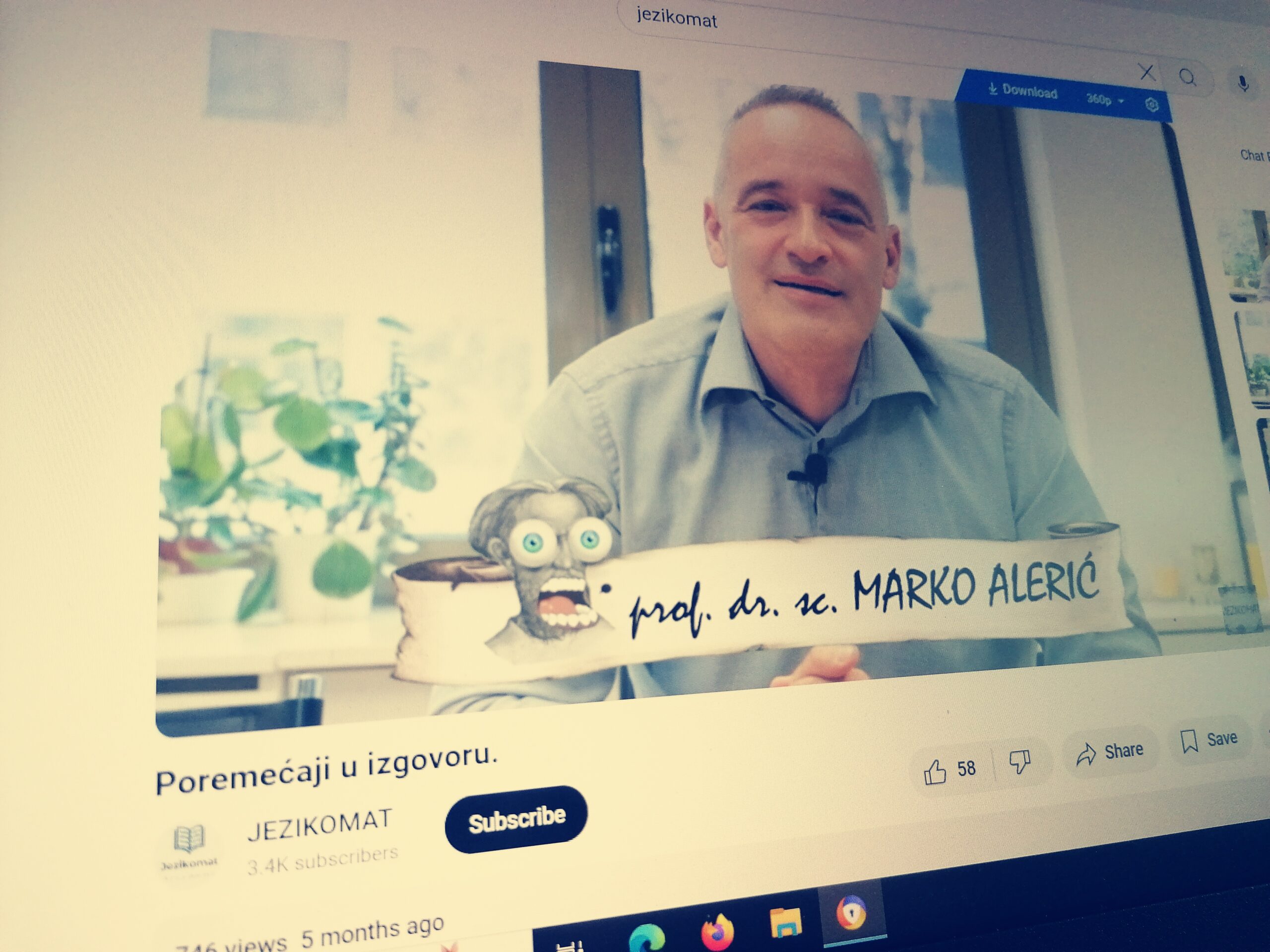 Naime, profesor je autor youtube kanala Jezikomat koji omogućava učenje hrvatskog jezika putem društvene mreže. Kao učen metodičar profesor, između ostalog, objašnjava što svrstavamo u dislalije (poremećaje u izgovoru), koliko riječi broje svjetski jezici (preporuka: Rječnik hrvatskog jezika, prof. dr. Vladimir Anić), a koliki fond je potreban za svakodnevnu komunikaciju, što obuhvaća denotativni, a što konotativni semantički okvir, distinktivnu funkciju fonema u pojedinačnim primjerima (ispreplićem: ispreplećem) te definiranje pojmova idiolekt i sociolekt.