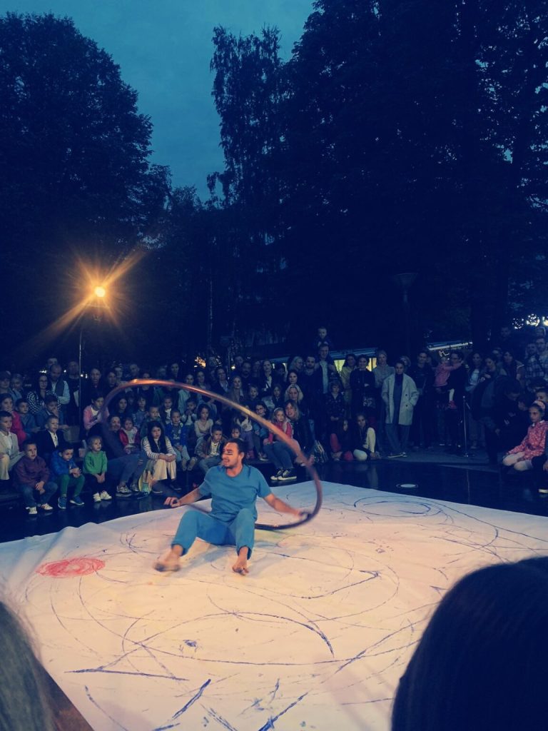 Naime, riječ je o diskursu suštine cirkusa kao metonimije kruga te likovnog izičaja koji se time postiže (dijalog:V. Kandinski, H. Miro) u izvedbi francuske grupe Cie SCOM.